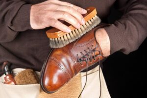 W jasnych butach często największy problem to „wypolerowane” ciemniejsze miejsca przy palcach i na zgięciach. To nie zawsze brud, tylko skóra zbijająca się od tarcia. Tu pomaga odżywienie i szczotkowanie po wyschnięciu, a nie kolejne mycie.